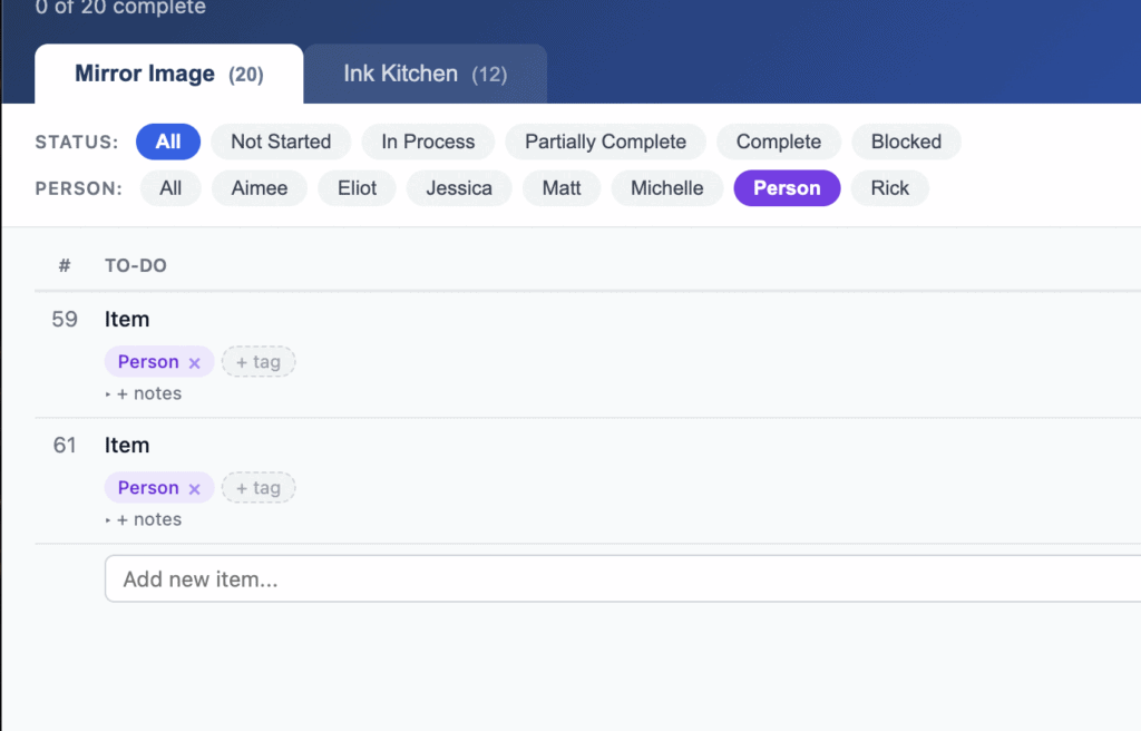 I run projects across multiple businesses, a screen printing company, a media organization and others. The action items live everywhere. In people’s heads, in transcript files, in meeting notes. Nowhere centralized. I needed to make something everyone on specific teams could access and edit from any device, no app installs, no logins.