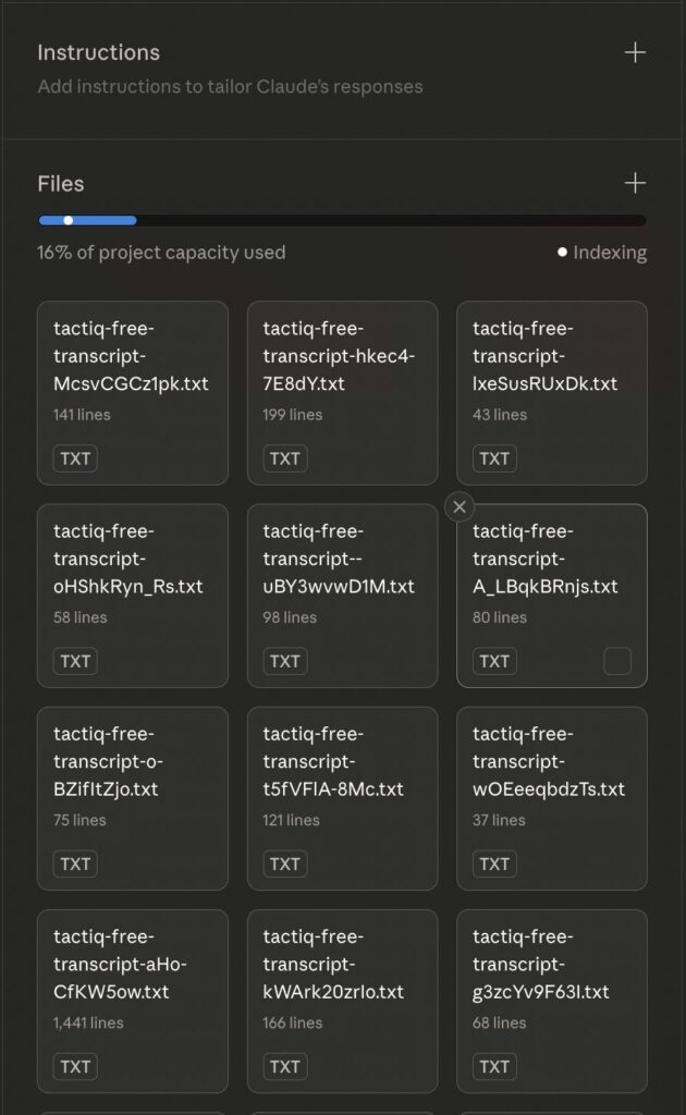 I gathered everything the company had already created. Video transcripts from about 100 YouTube videos (this took roughly 20 minutes). Written guides. Troubleshooting docs. Integration steps. I fed it all into a single, organized knowledge base. That same content now trains an AI assistant that answers questions conversationally, using the exact information the support team relies on.
